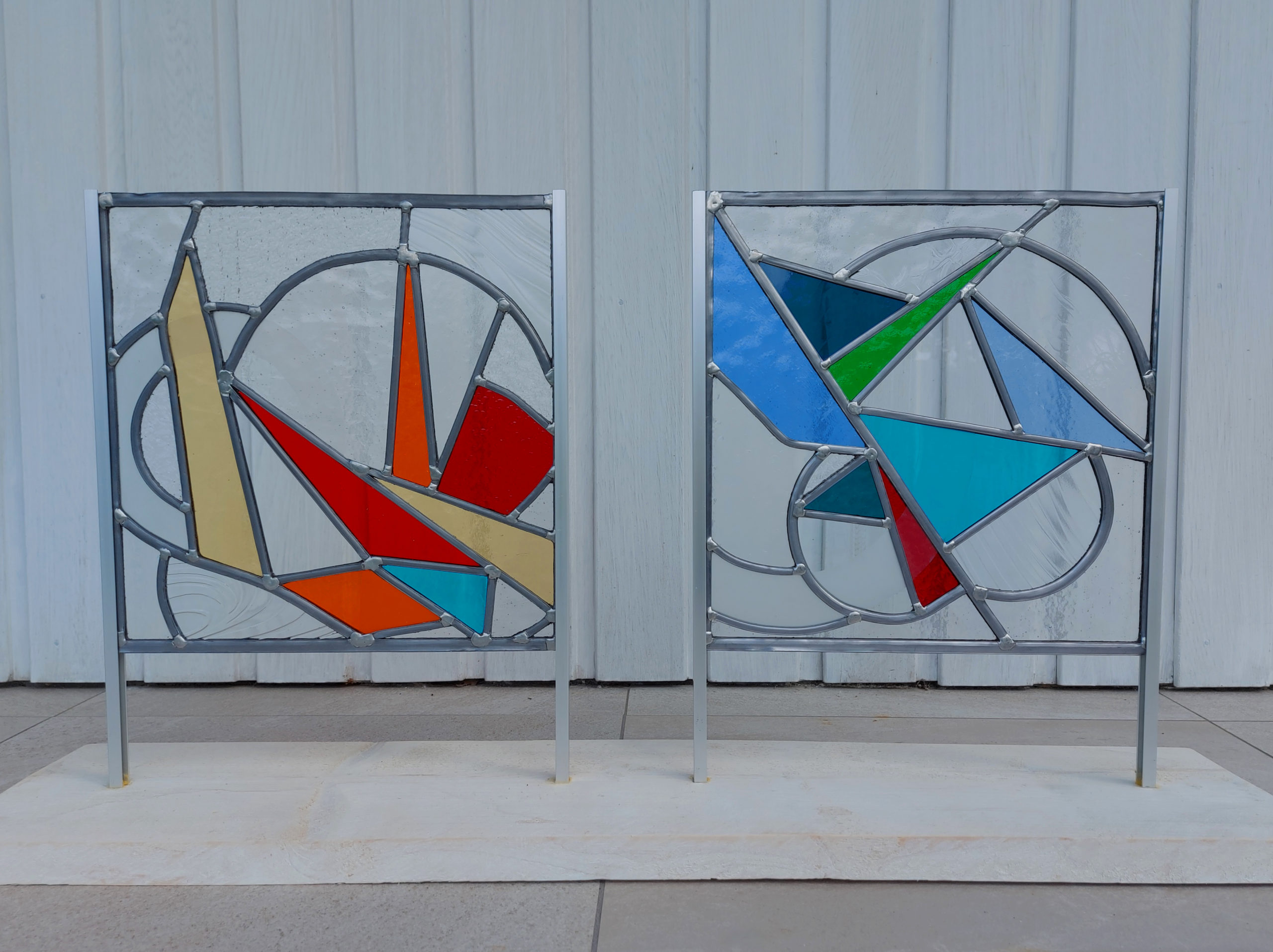 Hier een aantal van onze kunstwerken van glas. Hierbij is gebruik gemaakt van diverse methoden zoals glas in lood, brandschilderen en glasfusing.